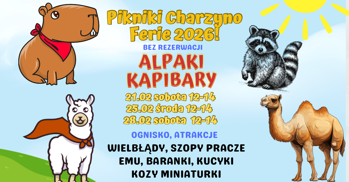 Al Pako – Alpaki Charzyno to rodzinna farma pełna wyjątkowych zwierząt: alpak, kapibar, wielbłądów, kucyków, owiec, emu, kózek i szopów praczy.